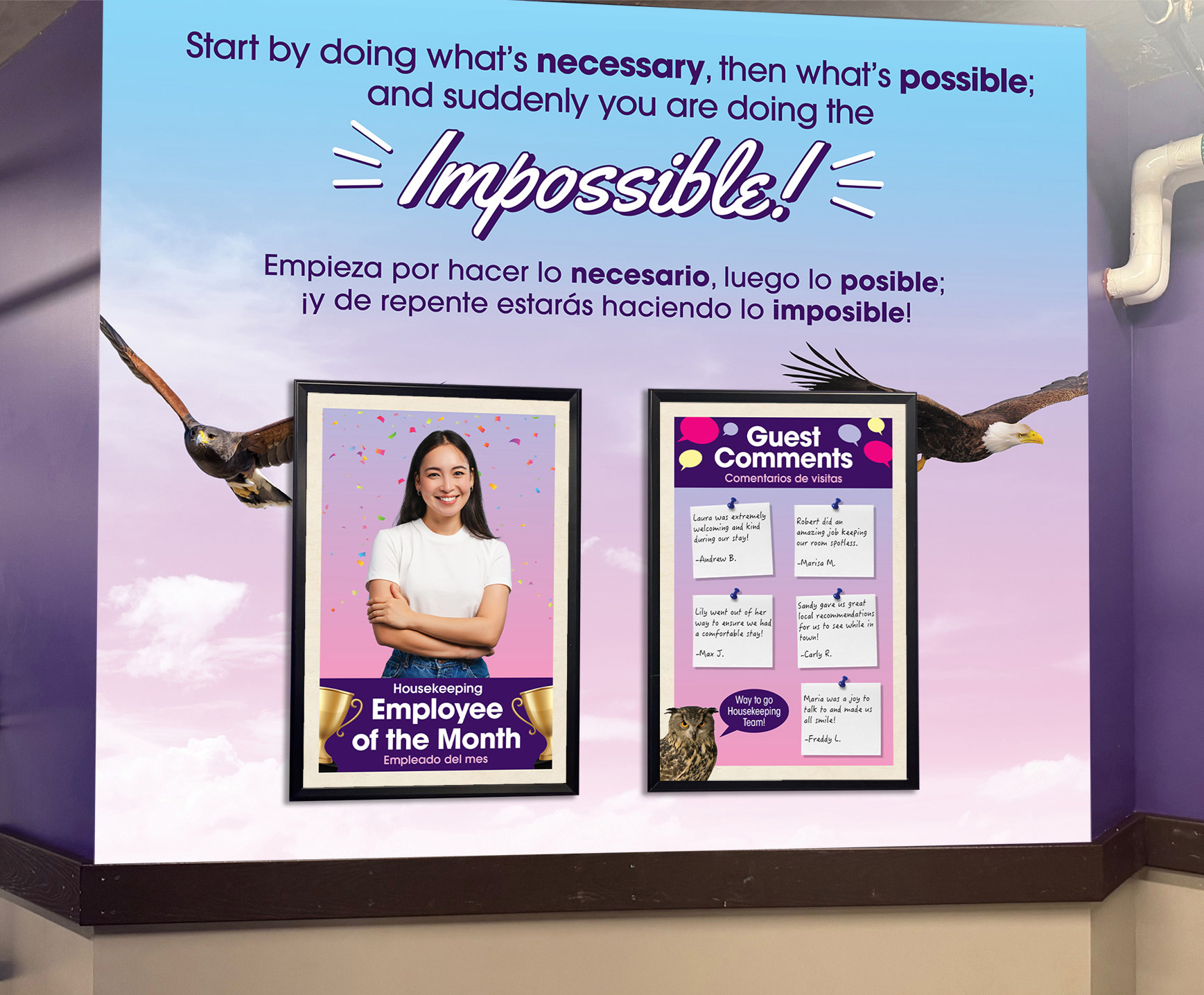 Our Housekeeping Team at Harrah's SoCal is a mighty team who keep over 1,200 rooms on property spotless and organized. Yet, this wonderful team is often under appreciated. It was time to bring some light and the spirit of Funner to the rather boring Housekeeping Team Member Area.